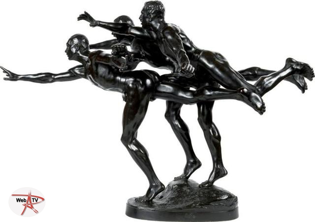 • Le lot 137 d’Alfred Boucher (1850-1934) est un groupe dénommé « Au but », une épreuve en bronze à patine noire, fonte d’édition ancienne vers 1930, signée A. Boucher avec le cachet du fondeur Siot Paris. L’évaluation de ce bronze est de 10.000 € à 15.000 €.