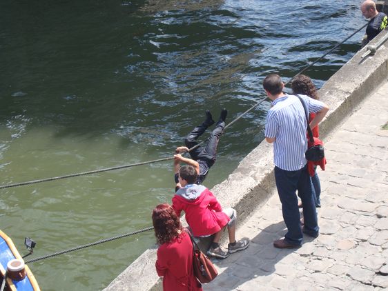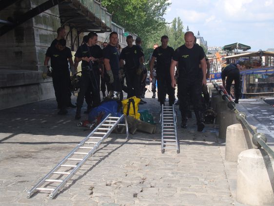 Sous la passerelle des Arts le 23 juillet à 11h45 - Les pompiers de Paris s'entrainent