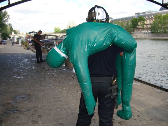 3 cars de sapeurs-pompiers stationnés devant l'Institut de France et des pompiers dans l'eau de la Seine : le décor de l'exercice est planté. Vendredi 23 juillet, l'objectif des pompiers de Paris est de remonter un mannequin de la taille et du poids d'un homme. Le lieu n'est pas anodin : la passerelle des Arts d'où une chute, un jour, n'est pas exclue par les autorités. Elle est même redoutée par les riverains et les élus d'arrondissement.