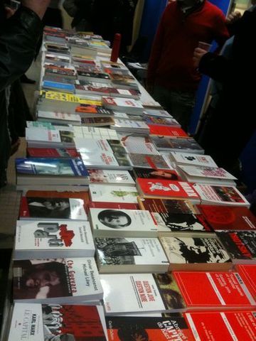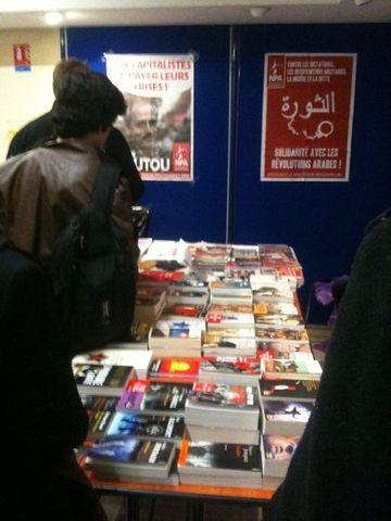 La pluie n’a pas empêché les partisans et autres curieux de se réunir le samedi 21 janvier 2012 pour la première fête parisienne du Nouveau Parti Anticapitaliste dans le 11e arrondissement de Paris. Toute l’après-midi et la soirée, entre 200 et 300 personnes se trouvaient dans la salle Olympe de Gouges, près du Père Lachaise.
