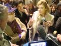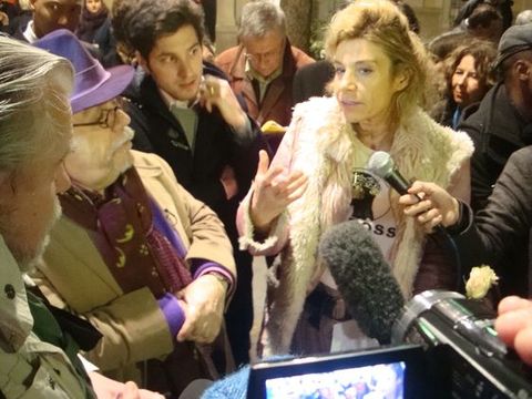 Après la marche, un mini-débat entre Frigide Barjot à la tête du collectif, et Michael Lonsdale, comédien, "pour respecter les chrétiens qui se sentent blessés" et Jean-Michel Ribes, directeur du Théâtre, "pour respecter la laïcité, respecter les athées". La discussion s'instaure, sous l'oeil et les micros des caméras, avec la promesse et l'engagement d'un grand débat.