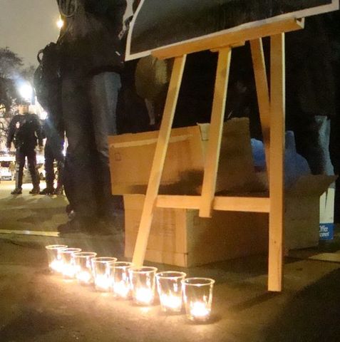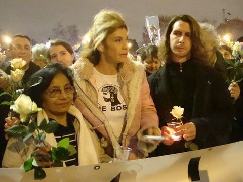 Nous sommes à quelques minutes du début de la manifestation prévue à 18h30, une marche silencieuse. A côté de lui, des bougies sont distribuées ainsi que des fleurs blanches.