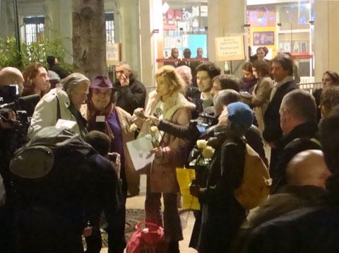 Golgota Picnic : les catholiques n'ont pas attendu les appels au calme de Jean-Michel Ribes, le directeur du Théâtre du Rond-Point, pour manifester dans le calme. Jeudi 8 décembre 2011 de 18h30 à 18h50, un cortège de 150 personnes environ s'ébranle en silence de la place Clémenceau sous la statue du Général de Gaulle, située à la sortie du métro Champs-Elysées Clémenceau, jusqu'au Théâtre du Rond-Point, 250 mètres plus loin.