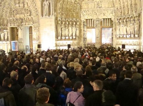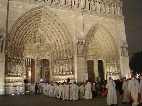 Dans le 4e arrondissement, devant le parvis de la Cathédrale Notre-Dame de Paris, sur la Place Jean-Paul II, une place voulue par le Maire de Paris Bertrand Delanoë, des milliers de catholiques commencent à se rassembler pour prier en silence, à l'appel des évêques de Paris.