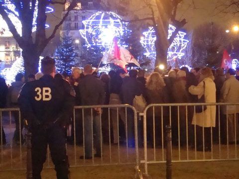 A quelques mètres de là, une cinquantaine de manifestants de la Ligue de Droits de L'Homme.