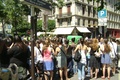 Vers 15h au 66 quai de l’hôtel de ville le jeudi 8 juillet, un concentré de fans de la série « Gossip Girl » se tient devant le bistrot Louis Philippe.