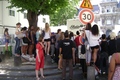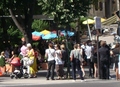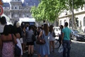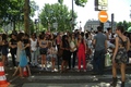 Les plus malins se dirigent vers la place Saint-Gervais, tout à côté. Là, les caravanes du studio abritent les acteurs. La cohue pendant 2 heures, sous un soleil de plomb : chacun bousculant les autres dès qu’une porte s’ouvre. Les apparitions des actrices alias Serena et Blair se font rares. Au final : les fans sont pour une partie déçus.