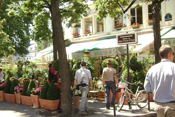 Le café Louis-Philippe entre le Quai et la rue de l'Hôtel de Ville devant la rue Pont Louis-Philippe est aujourd'hui à la mode.