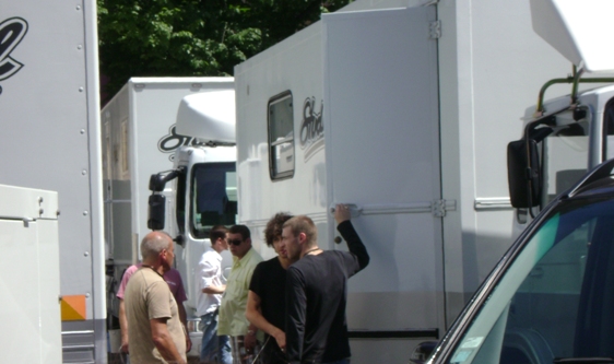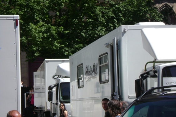 Au bout d’une heure et demie, les appareils photo crépitent. L’actrice Leighton Meester passe d’une caravane à une autre, vêtue d'une robe couleur fushia.