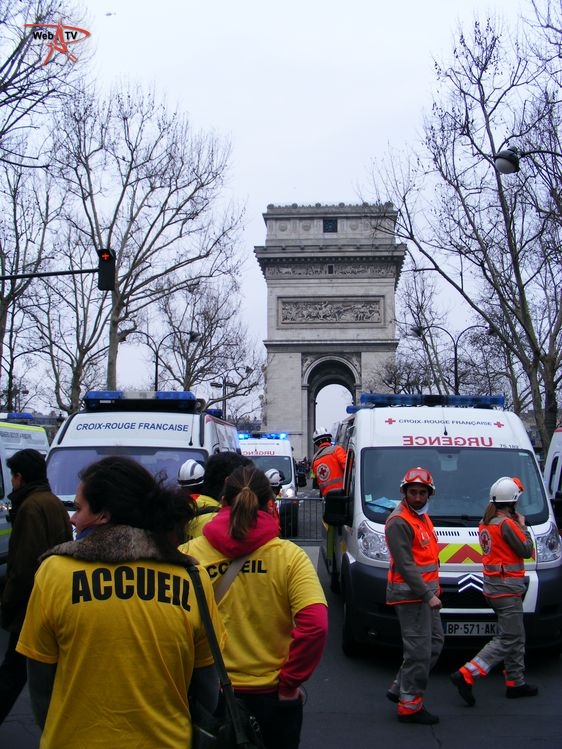 Grâce aux images retransmises en direct par les chaînes toute info et par une présence sur le terrain, l'avenue de la Grande Armée se révèle noire de monde jusqu'au Pont de Neuilly, tout comme l'avenue Foch. Les manifestants tentent d'occuper pacifiquement l'avenue des Champs-Elysées.