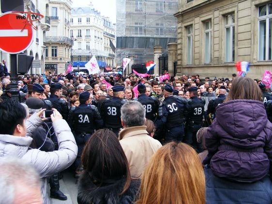 Il est 16h43 le dimanche 24 mars 2013 lorsque des gaz lacrymogènes sont tirés par les forces de l'ordre barrant les Champs-Elysées entre le Drugstore et la boutique de luxe Cartier. En cause, des manifestants ne respectant pas les consignes des organisateurs.