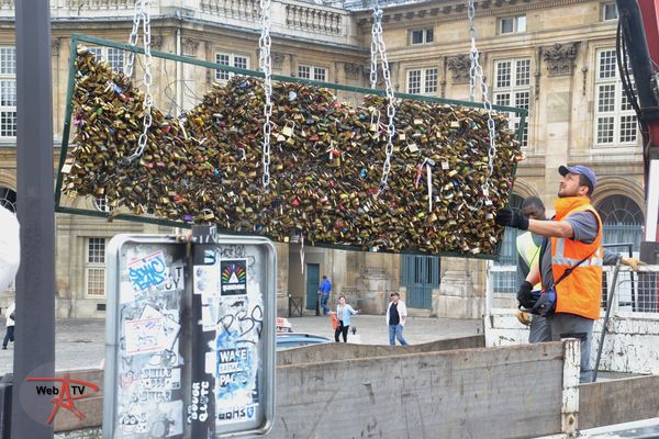 Cadenas delenda est. Les cadenas d'amour quittent la Passerelle des Arts.