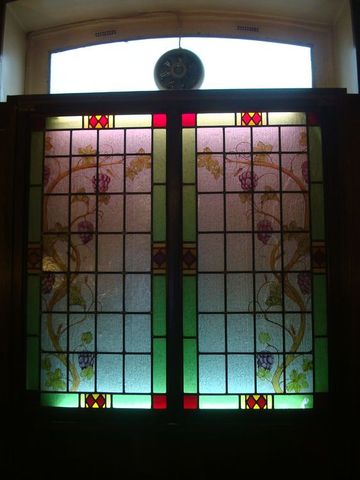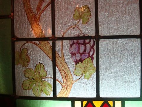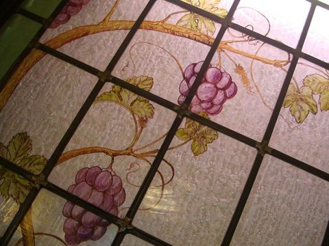 Les vitraux achetés aux enchères par le propriétaire précédent donnaient le la : des vignes, des grappes de raisin pour un établissement qui servait des Beaujolais village avec d'excellentes assiettes de charcuterie et de fromage.
