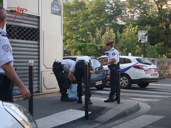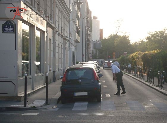 Un policier demande à un automobiliste qui monte dans sa voiture garée rue Friant : "pouvez-vous vérifier que rien n'a été volé dans votre voiture ?" L'homme monte dans son véhicule et déclare : "Non, tout va bien".