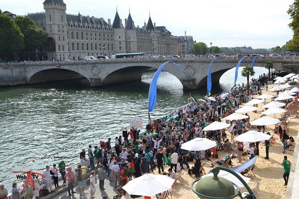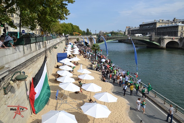 Tel Aviv sur Seine et Gaza Plages, organisée à la dernière minute par les militants pro-palestiniens. Le soir du 13 août, la Mairie de Paris annonce 11.000 visiteurs et pas un mot sur Gaza Plages ni sur les suites qu'elle entend donner à cette manifestation sans autorisation.