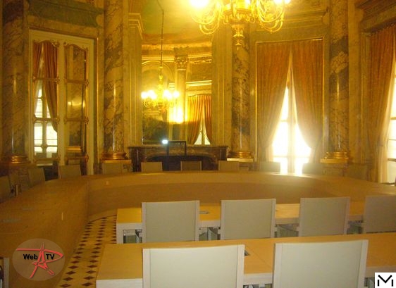 Le Conseil Constitutionnel est composé d'un grand salon, utilisé comme salle de réception, d'un petit salon, de la salle des séances et du bureau du président. La table de la salle des séances comporte les noms des siégeants, notamment Jean-Louis Debré, président, Jacques Chirac et Valéry Giscard d'Estaing, membres de droit.