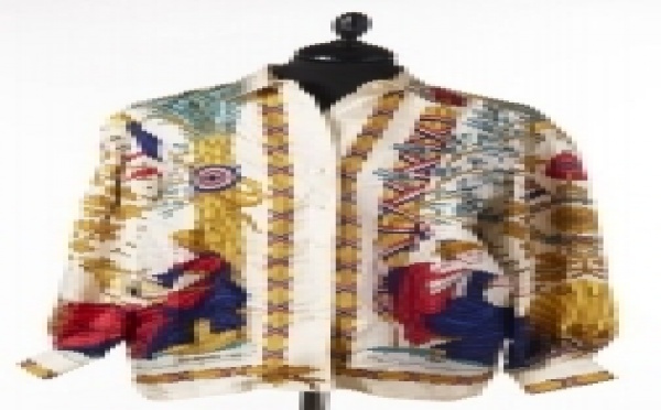 « Liberté, égalité, fraternité » sur un chemisier Hermès, est-ce « bling bling » pour aller voter ? Un chemisier à soi, un chemisier en soie lors de la vente aux enchères « Hermès Vintage. » Une parisienne républicaine haute couture affiche sur un...