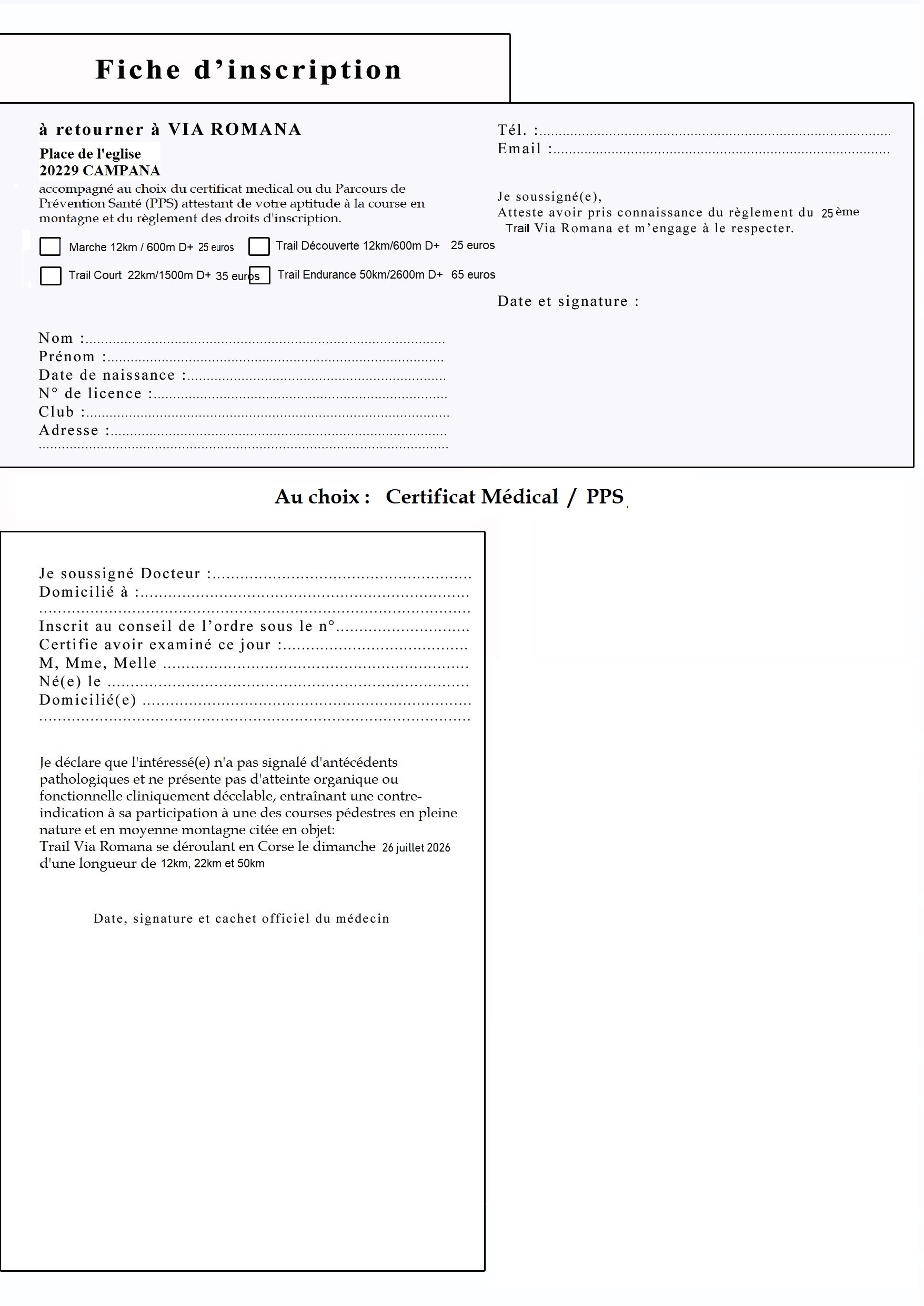 - Pour le moment seules les inscriptions par courrier sont ouvertes. Il vous suffit d'imprimer le formulaire joint et de nous le transmettre avec votre règlement. Les inscriptions par internet seront ouvertes mi-avril. - Au programme: une marche sportive de 9,5km et 3 trails de 13km, 23km, et 50km Jacques BERGOUNHE